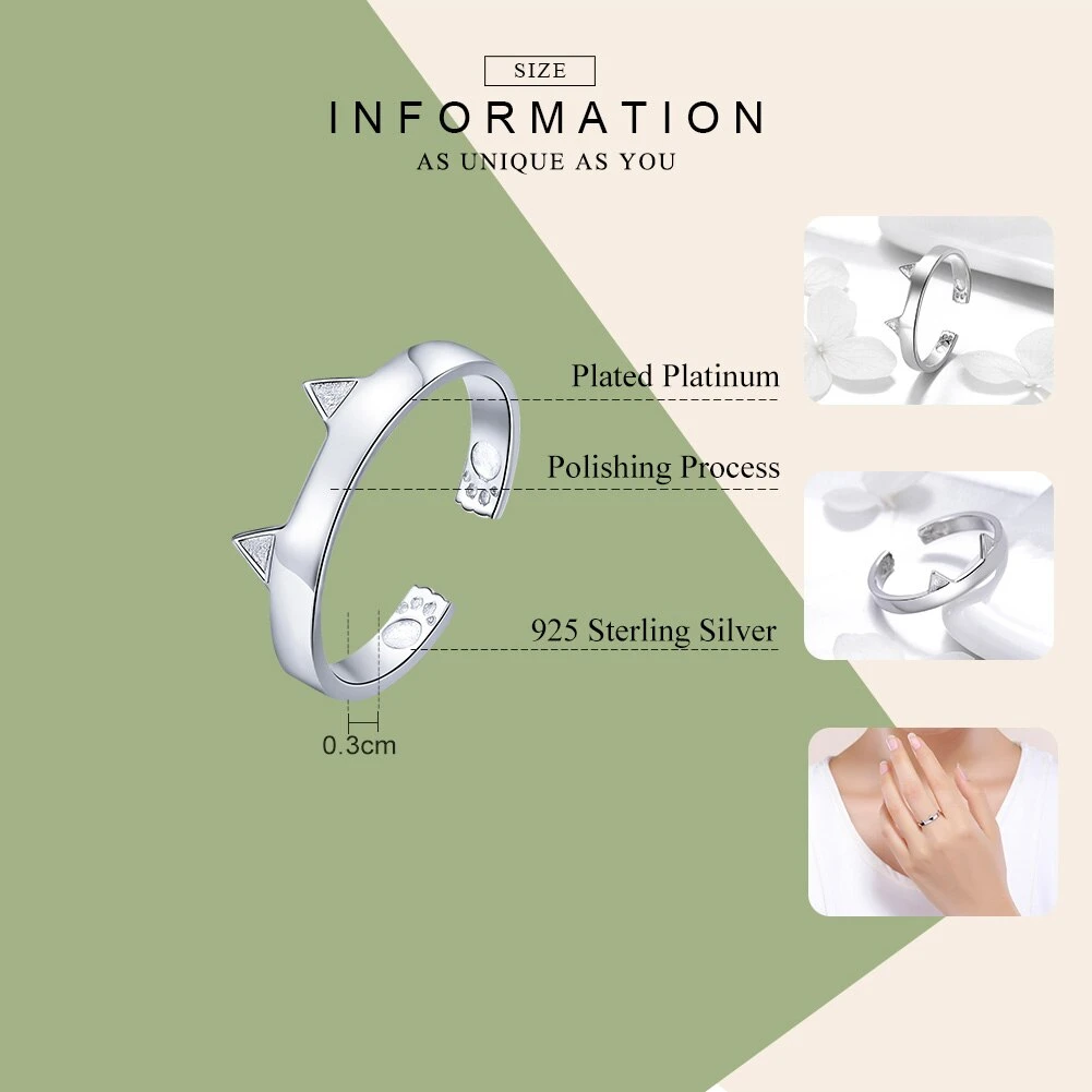 Bague à oreilles de chat en argent 925° sterling réglable.