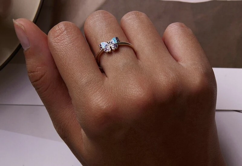 Bague ouverte en argent 925 sterlings avec la représentation d’un joli papillon.