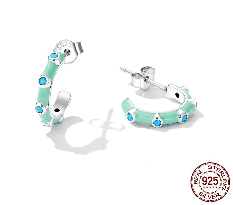 Jolie boucles d’oreilles demi-cercle turquoise en argent 925 pour femme.