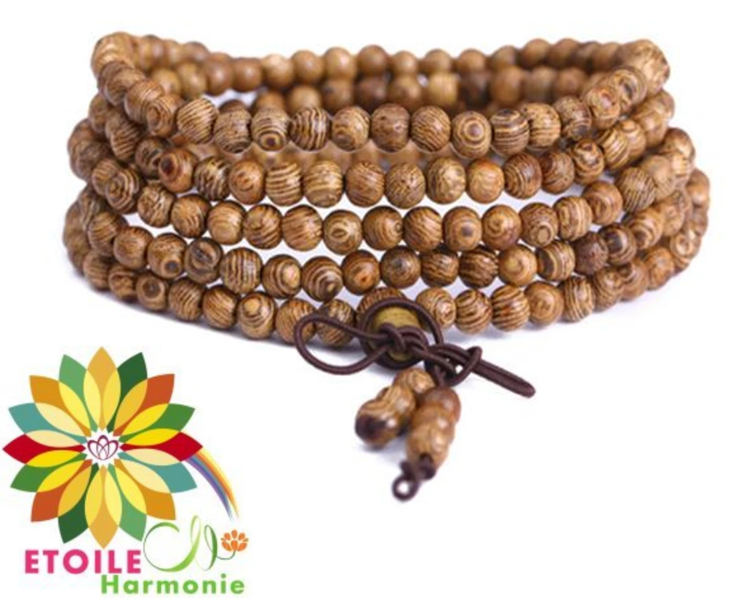 Jolie bracelet mixte genre chapelet de perles en bois qui est reliées par un fil élastique qui cela aide vraiment pour le mettre au poignet.