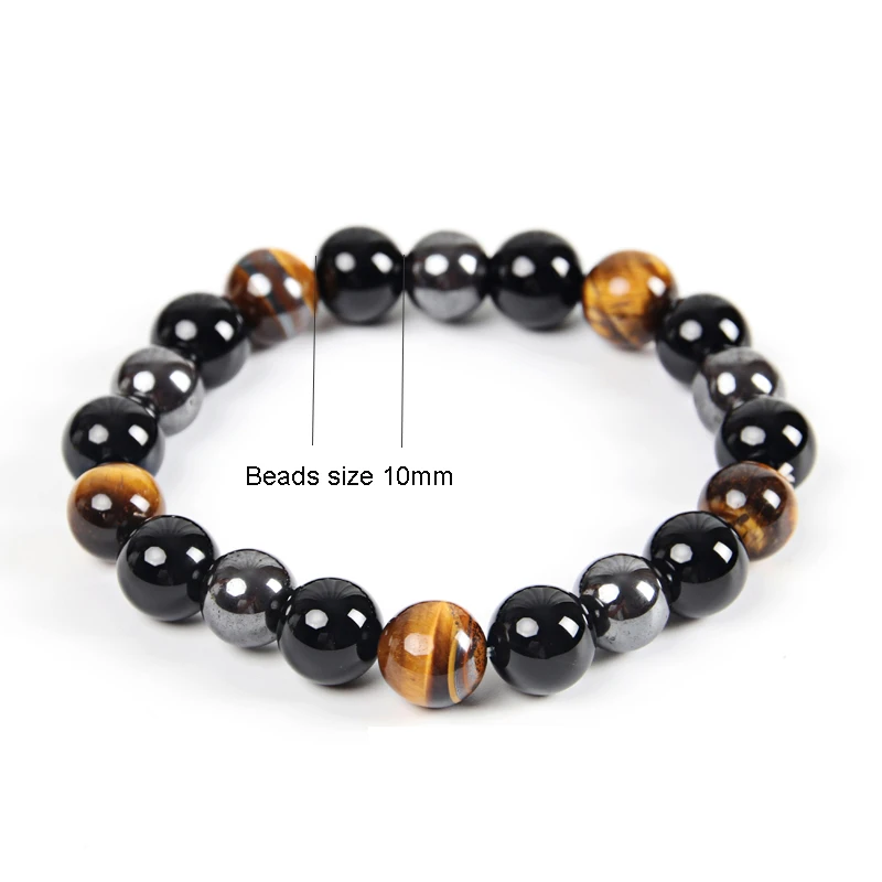 Bracelet en pierre naturel composé de pure énergie positive pour mettre à votre bras avec des pierres de protection comme l’œil de tigre, hématite et l’obsidienne noir.