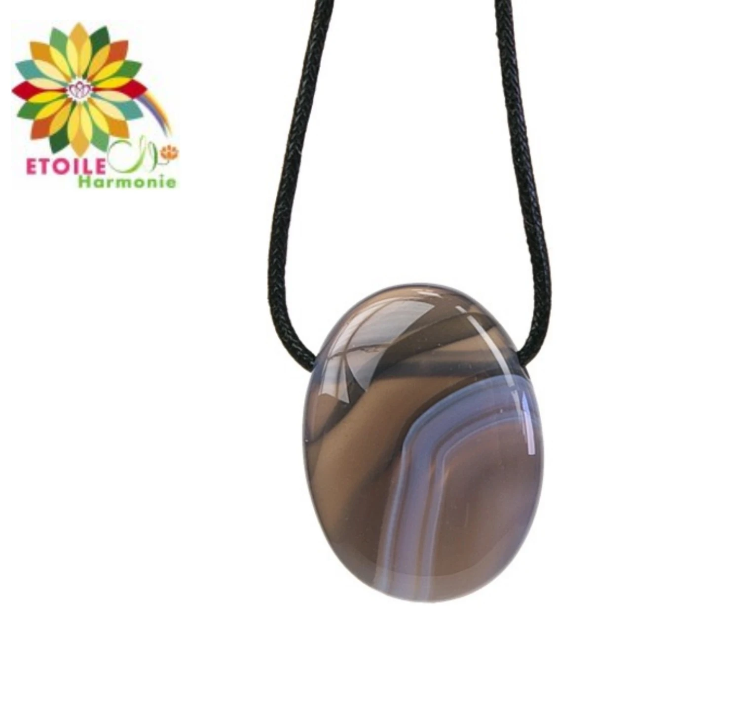 Description du produit « Collier cordon Agate Rubanée Pierre pendentif pierre ovale percée »