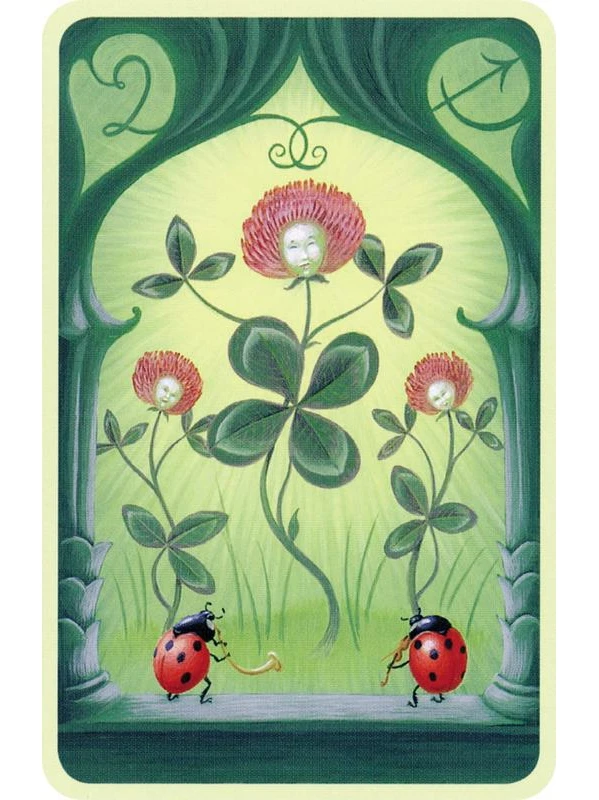De même, le verso des cartes, illustré par des anges d’une sphère de l’au-delà et qui portent leurs regards célestes sur la Terre reflètent un nouvel univers