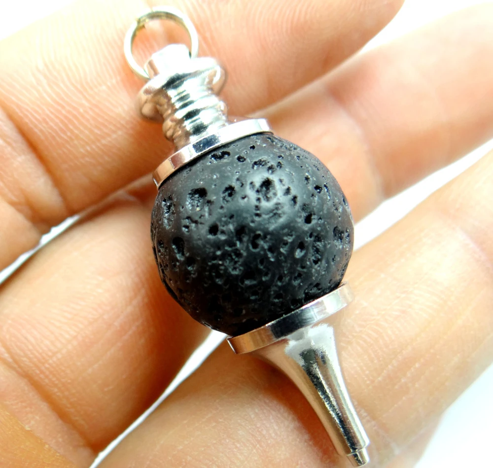 Pendule seul qui peut aussi faire office de pendentif qui comprend une pierre naturel de lave volcanique.