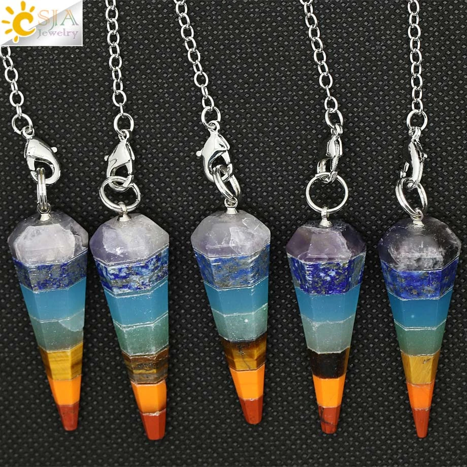Pendule pointe des chakras avec chaîne. Mais il peut aussi faire pendentif car on peut enlever facilement la chaîne du pendule.