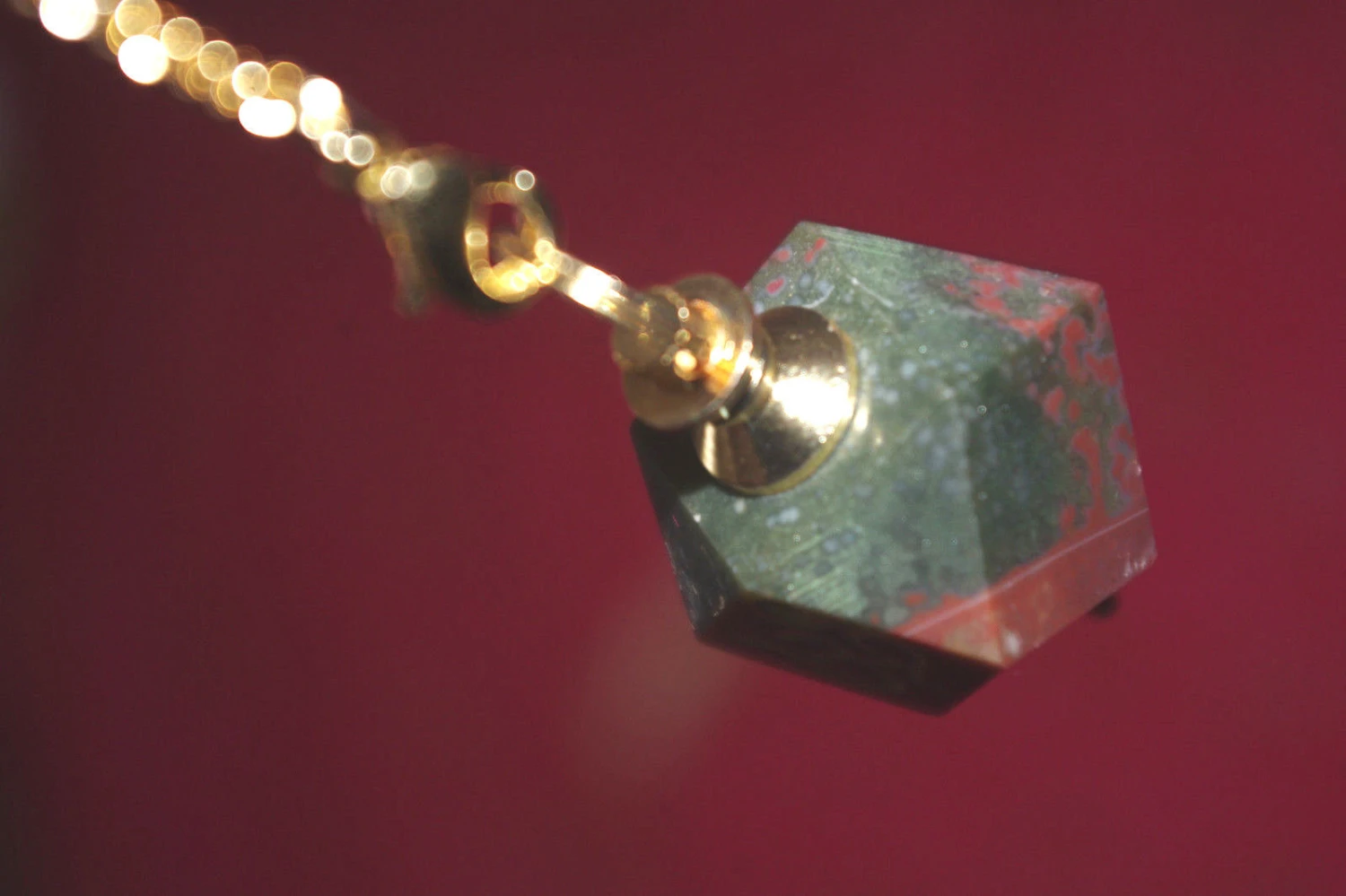 Pendule Artisanal en Jaspe rose avec un signe Reiki sur l’une face.